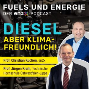 Kann man Diesel klimafreundlicher machen, ohne den Motor umzubauen? Ja, sagt Prof. Jürgen Krahl im en2x-Podcast und verweist auf den „R33“-Diesel, der in Fahrzeugen aller Altersklassen funktioniert. Zusammen mit Christian Küchen diskutiert er, warum die Atmosphäre sich nicht für politische Scharmützel interessiert und welche finanziellen Instrumente nötig sind, um Investitionen in grüne Raffinerien und E-Fuels abzusichern.